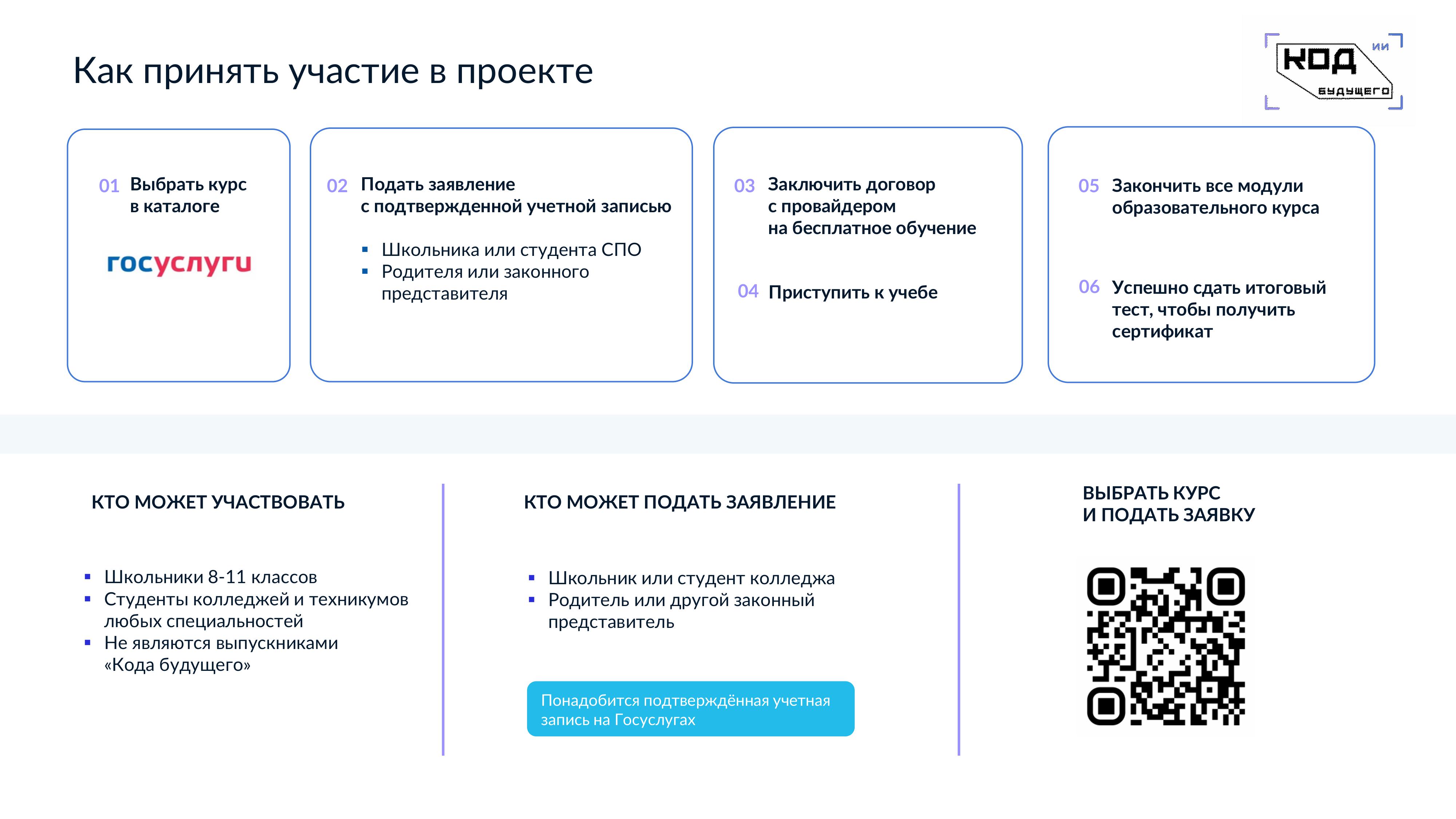 Уважаемые родители и дети! В настоящее время на портале федеральнойгосударственной информационной системы «Единый портал государственных и муниципальных услуг (функций)» осуществляется прием заявлений на участие в проекте "Код будущего. Искусственный интеллект".